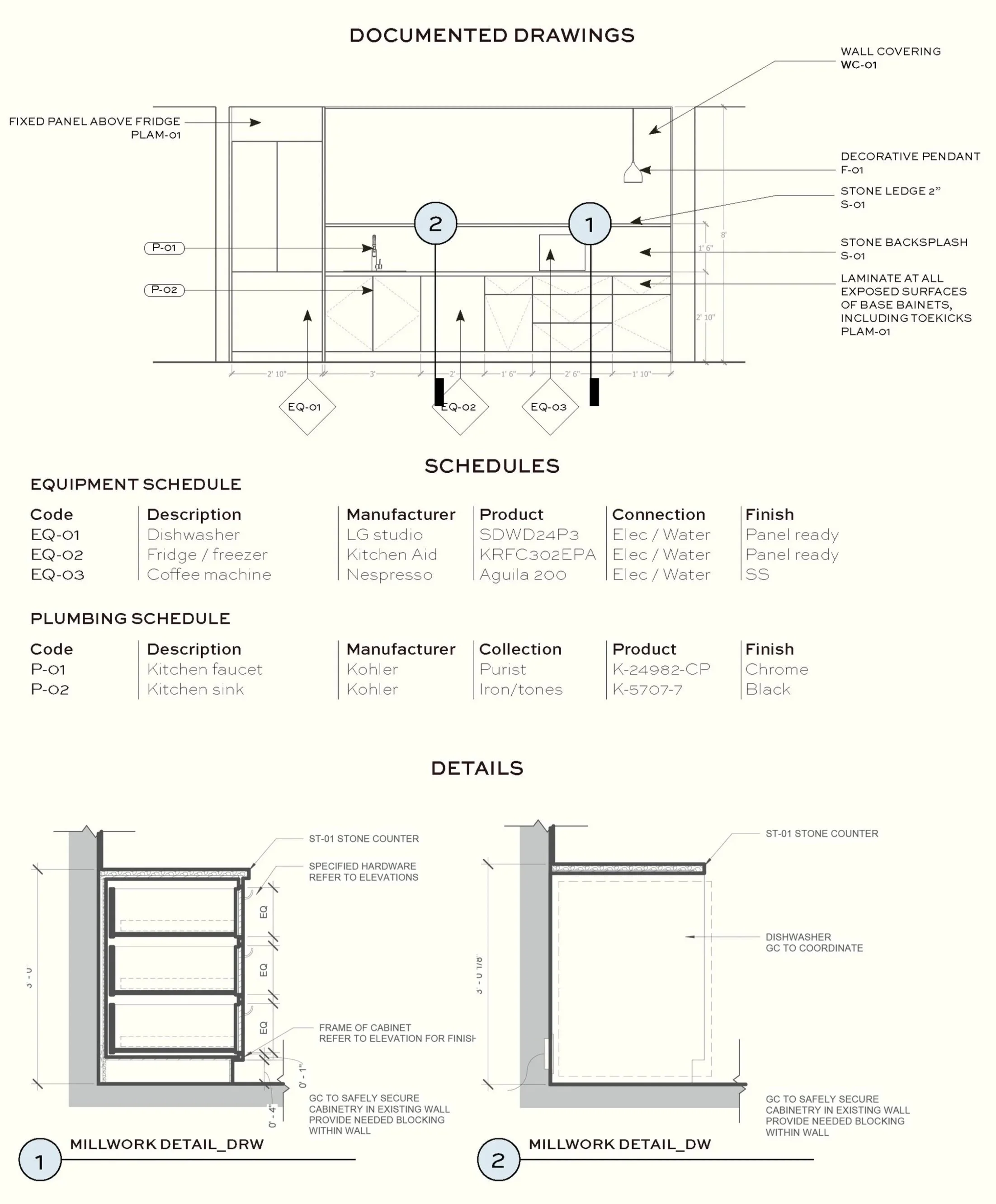 Documentation- each design drawing will be developed into a technical drawing to show constructibility, exact dimensions, finishes, etc. This portion also encompasses construction details.
