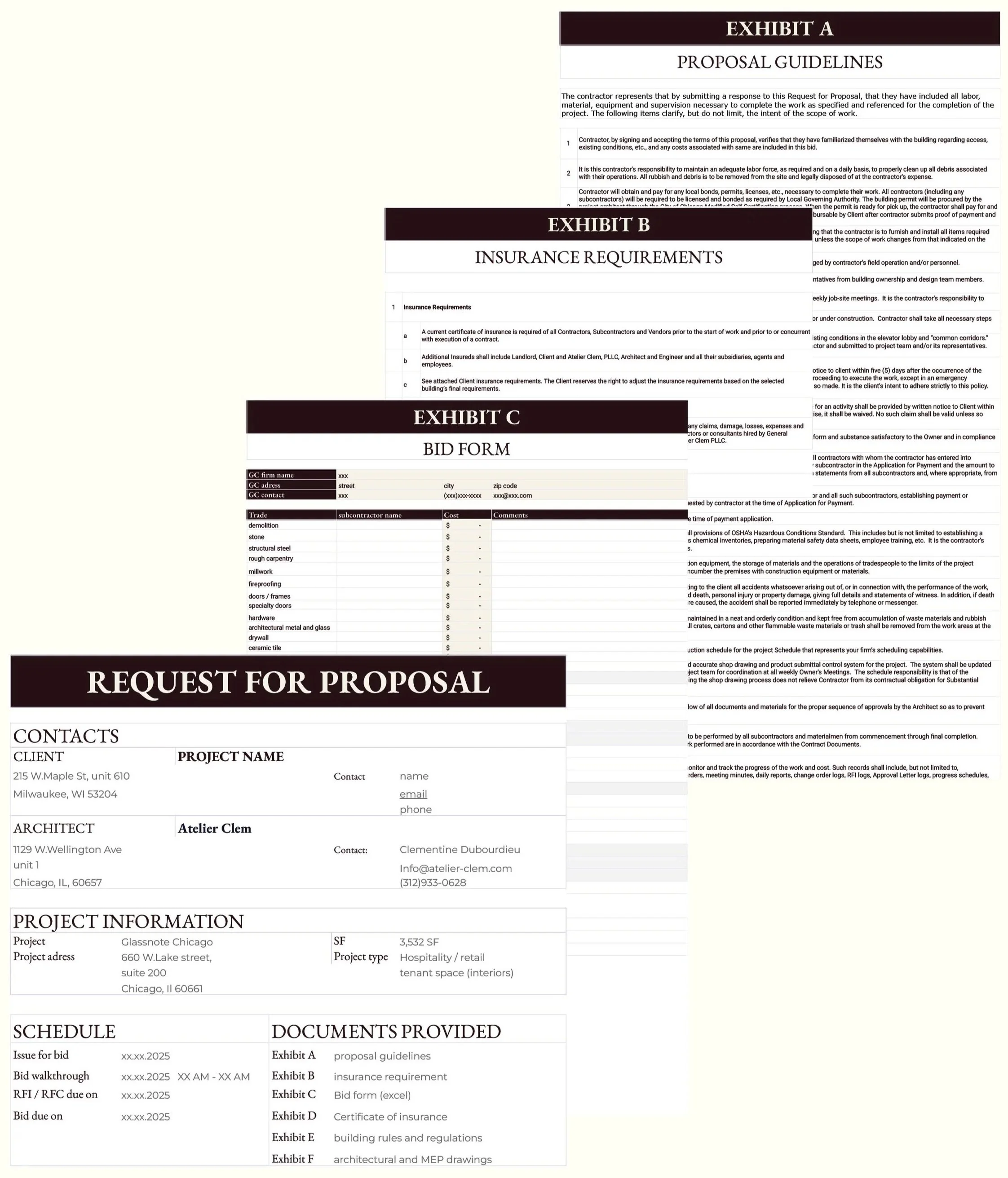 RFP preparation - Prepare a comprehensive scope document package, with all necessary documentations explaining not only the scope of work you want a GC to provide cost on, but also the requirements of the space (COI requirements, Building rules and regulations…) and of your company (Bid form, guidelines…), as well as the